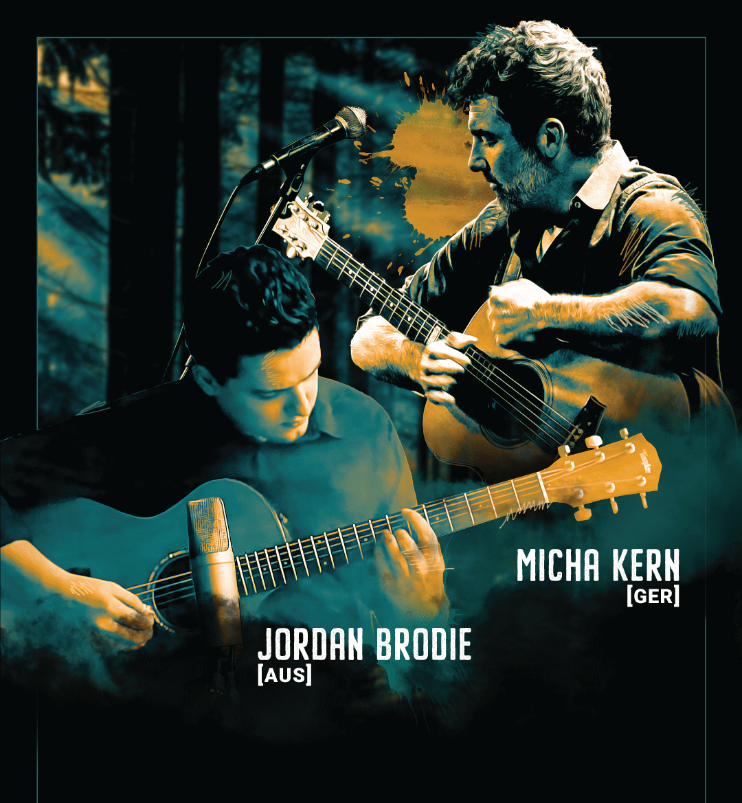 Mit „Songs without words“ zeigen die beiden Akustik-Virtuosen, welche unfassbaren Klang-Momente auf der Gitarre möglich sind. Jordan Brodie, der als einer der besten jungen Gitarristen Australiens gefeiert wird, beehrt die Bühne mit seiner beeindruckenden Fingerstyle-Technik, seinem außergewöhnlichen Songwriting und einer intensiven Präsenz. Auf der anderen Seite begeistert Micha Kern aus dem Chiemgau das Publikum mit seiner einzigartigen Fähigkeit, die Gitarre gefühlt in eine komplette Band zu verwandeln. Auf meisterhafte Weise verbindet er explosive Riffs, gefühlvolle Kompositionen und kreatives Storytelling miteinander.